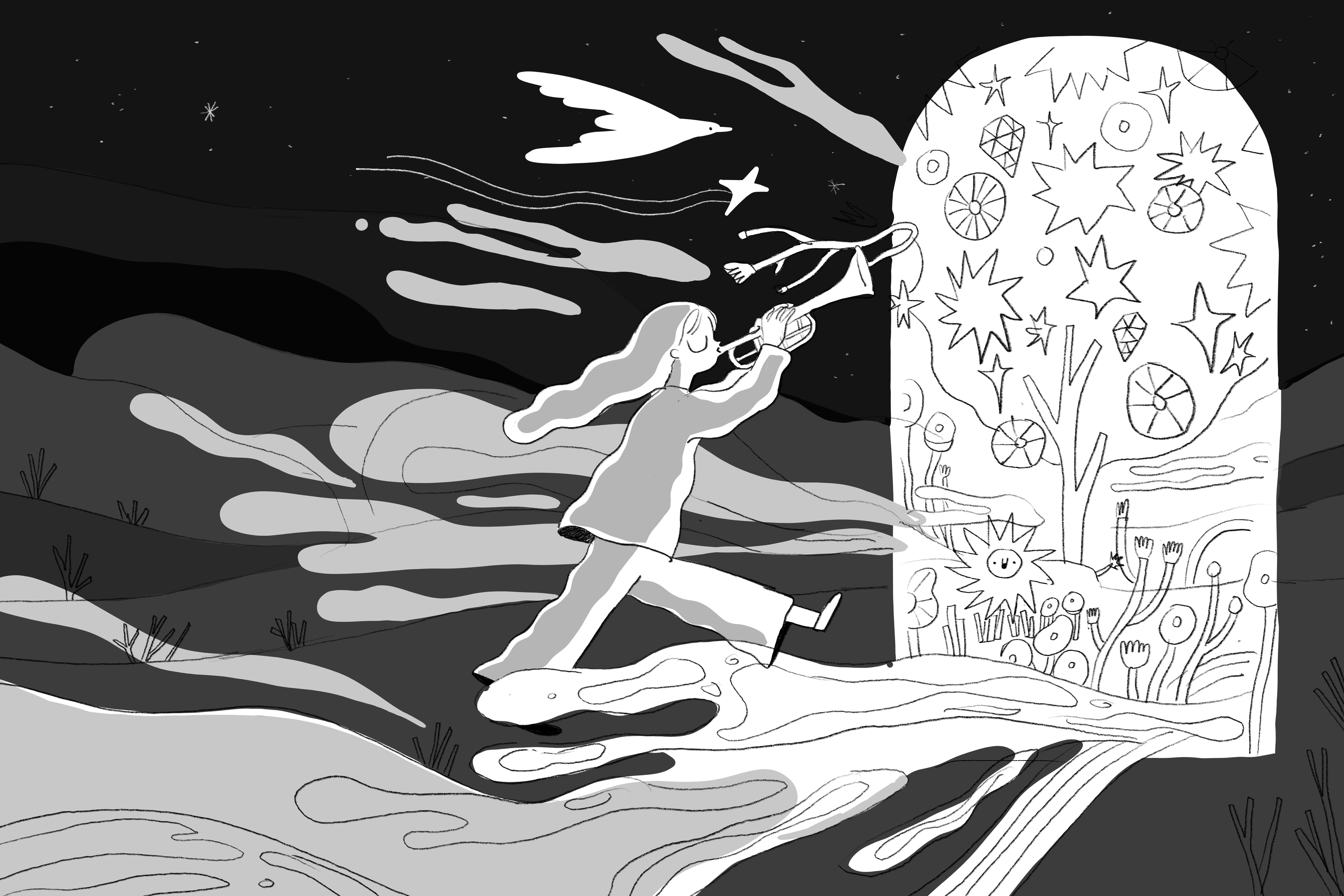 Even in the midst of darkness and storm, we can open ourselves up to joy. I wanted to capture the idea of joy flowing in like waves.